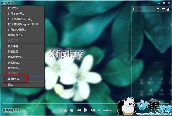 1、 首先打开影音先锋,然后点击在左上角点击“影音先锋”四个字,在弹出来的菜单中选择“设置选项”点击。