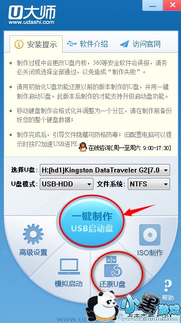 方法二:制作前先点击还原U盘后,再点“一键制作”。