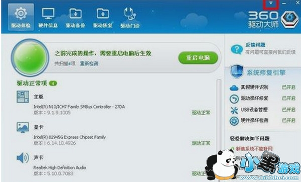 步骤二:等到驱动大师检测结束后,点击下图所示的右上角拿个下拉小箭头