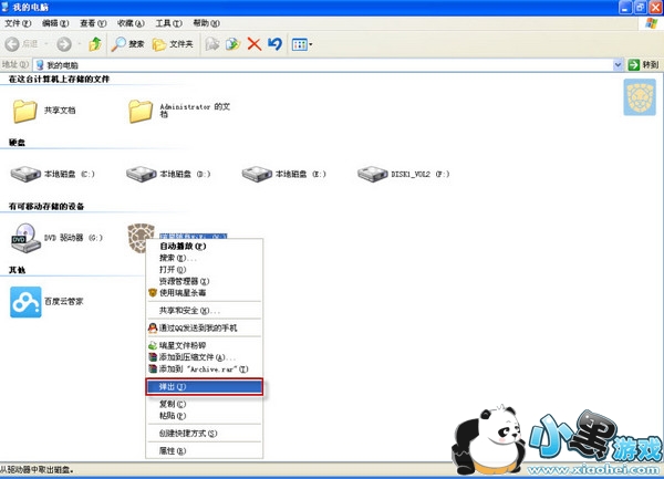 我们在H光驱盘符上右键点弹出,让系统重新安装一下瑞星安全WiFi网卡驱动,即重新识别一下瑞星安全WiFi无线网卡。