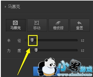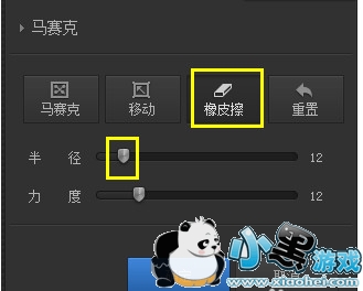 步骤四:想要删除马赛克只要点击“橡皮擦”,设置你想要的“半径”和“力度”。
