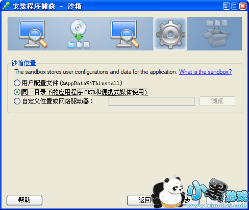 12、出现此窗口时,由于本文制作的是便携版,所以选择第2项“同一目录下的应用程序(USB和便携式媒体使用)”,然后点击“下一步”: