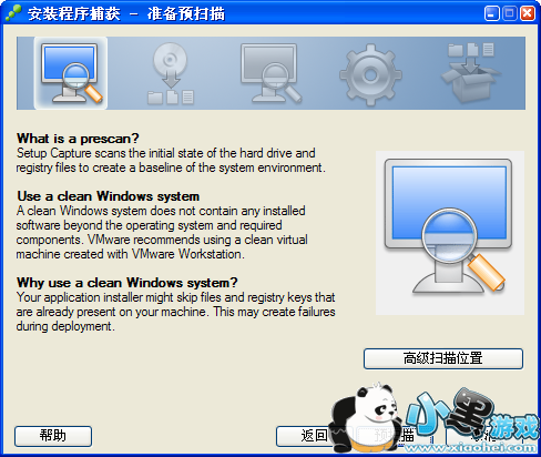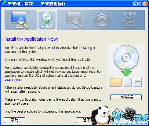 4、预扫描完成后,窗口显示“Install the Application Now!”文字时,表示VMWare ThinApp正在等待你安装软件。切记!此时不要点击窗口的任何按钮,电脑也不要进行任何无关的操作,此窗口放着别动!