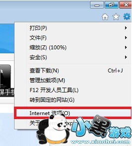 一、首先打开IE网页浏览器,然后找到点击顶部菜单中的【工具】按钮或者文字,在下拉菜单中,选择【Internet选项】,如下图所示。