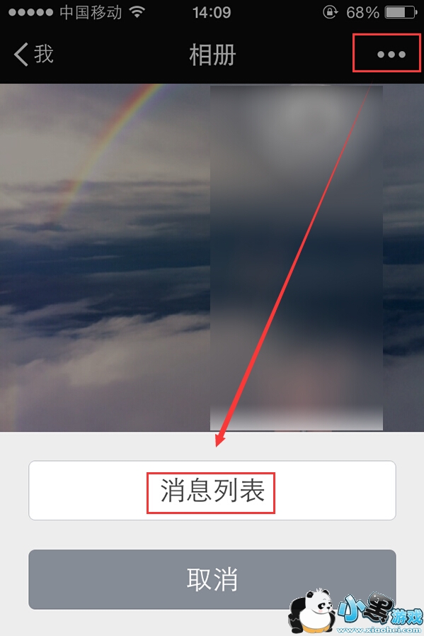 2.在我的相册右上角上有一个三点按钮,点击一下,就会弹出一个“消息列表”选项。