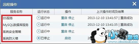 2、对于Windows操作系统,服云提供包括IIS服务、MySQL数据库服务、系统安全策略、系统防火墙在内的服务器重要服务重启操作,如图所示: