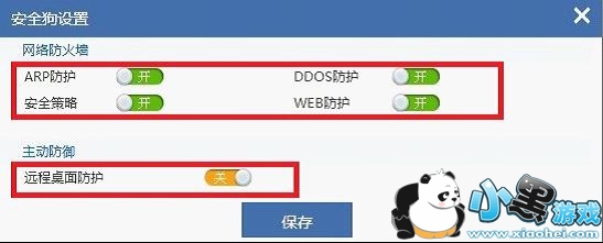 2、安全狗软件远程操作提供包括ARP防火墙、DDoS防火墙、安全策略、Web防火墙、远程桌面防护功能重启,如图所示: