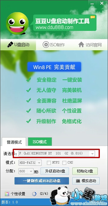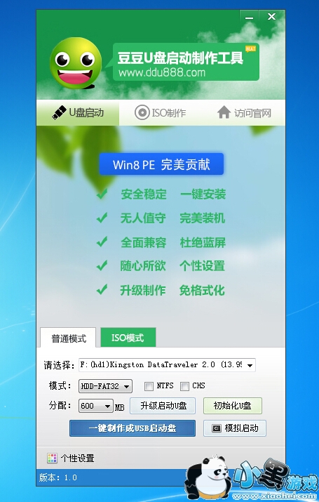 | 软件名称: | 豆豆U盘启动制作工具v1.0 |