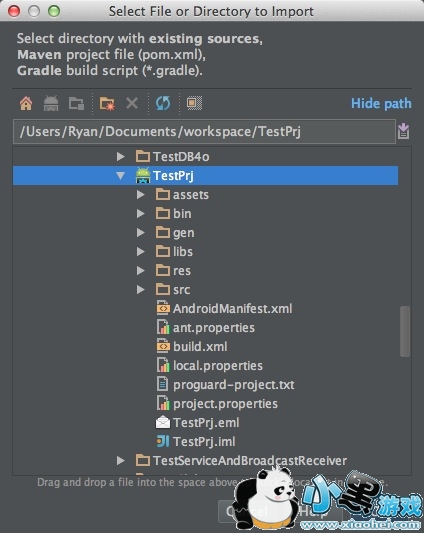 3.随后进入Android Studio并选择Import Project,可以看到刚刚在Eclipse中的项目图标变成了一个Android机器人图标,说明转换成功,这时候选择工程导入即可: