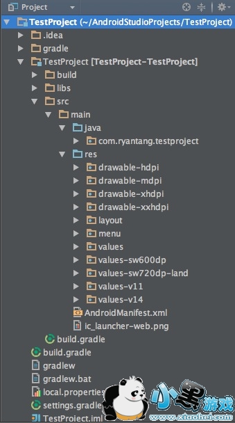 展开后可以看到Android Studio的目录结构,和Eclipse的工程还是有一点区别的:
