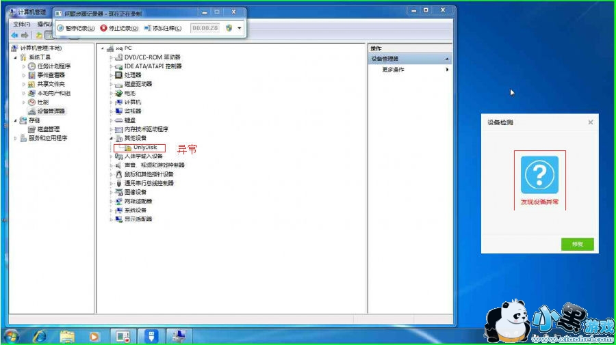 当U盘连接到电脑时,如果出现异常,USB宝盒能够第一时间检测出来。同时,你也可以在设备管理器里面查看到U盘异常的情况。U盘异常还会表现为无法在“我的电脑”-“有可移动存储的设备”和磁盘管理中出现。因此能够确定该U盘出现了异常情况。