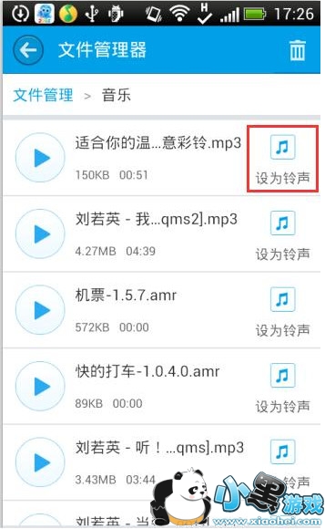 步骤四、如果您是下载的铃声,并且想设置为手机铃声的话,在手机上打开2345手机助手安卓版,进入“管理”-->“音乐”,找到该铃声,点击“设为铃声”即可。