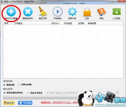 1、打开下载好的软件,直接进入操作主界面,点击上方左起第一个“添加文件”按钮,将需要识别的文件按提示添加到软件中。