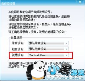 2) 在音视频窗口中的视频设备中选择“Virtual Cam”,即可实现在聊天室关联MVBOX虚拟摄像头,可以很方便的利用画中画、调色板、滤镜和抠象、特效等功能来美化您的摄象头,如下图设置所示: