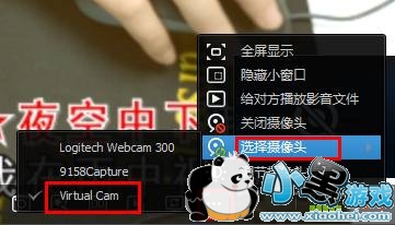按钮,在功能列表中点击“选择摄像头功能”,选择“Virtual Cam”,即可实现在QQ视频的时候,使用MVBOX虚拟摄像头功能,可以很方便的利用画中画、调色板、滤镜和抠象、特效等功能来美化您的摄象头,如下图设置所示:
