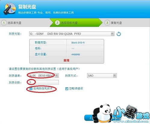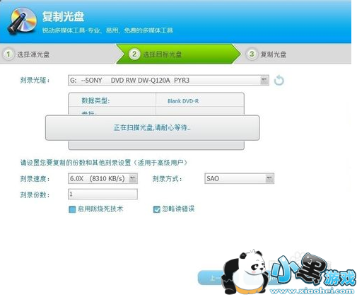 步骤三:选好源光盘,单光驱无所谓,双光驱要注意看软件自动搜索后给出的光驱是不是源光驱。确定就点“下一步”