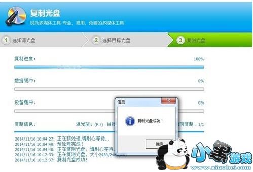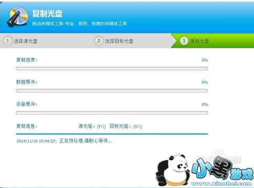 步骤六:确定找到外置光驱了,我们点开始复制,复制过程会先进行数据缓冲,再是设备缓冲,然后开始复制,这些过程都是自动的。