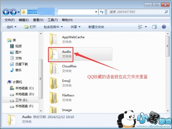 qq收藏的语音默认是在自已qq号码文件夹中的Audio文件夹里面。比如小编qq号是pc6.com,并且是安装在E盘的,所以qq收藏的语音保存的位置是E:/QQ/pc6.com/Audio