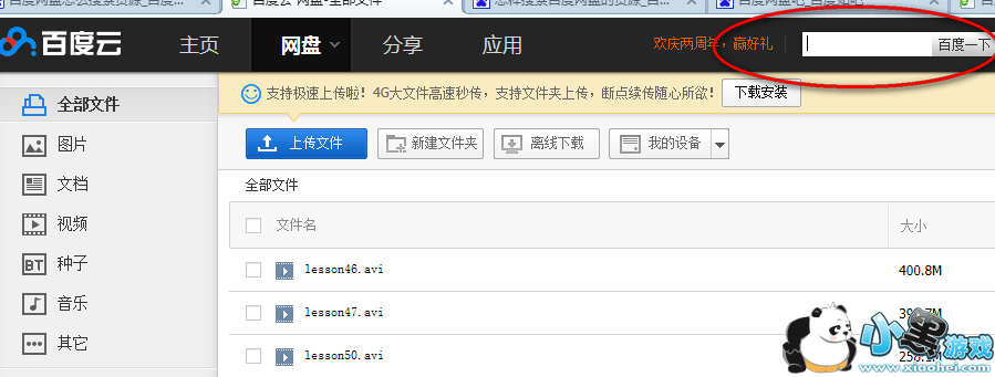 2、进入到自己的网盘中,输入你想要搜索的内容
