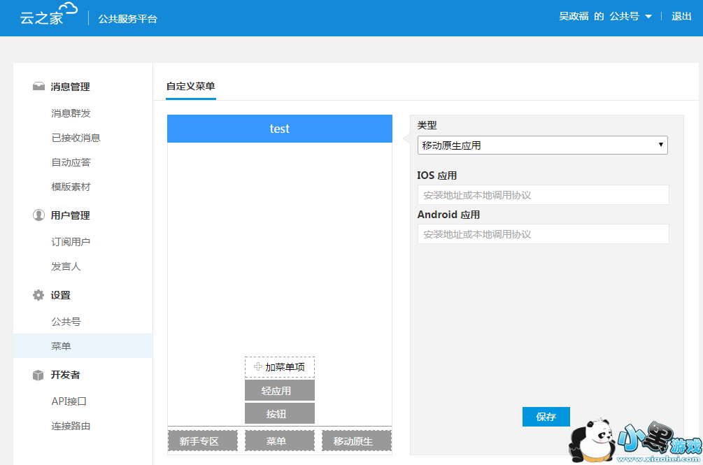 10、自定义菜单移动原生应用类型,可以直接链接到应用市场下载地址,让用户直接下载应用。