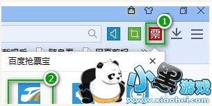 1、打开百度浏览器抢票专版,点击右上角的“票”图标,选择“百度抢票宝”。