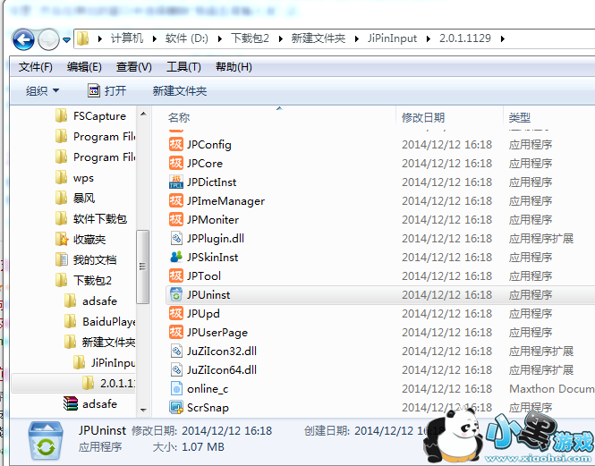 方法三:我们在安装极品五笔的安装位置找到“JPUninst”程序双击。