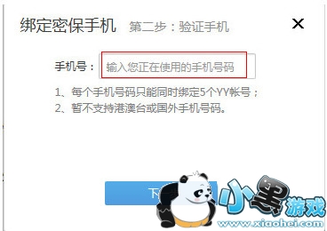 步骤七:在新出来的对话框中输入希望绑定的手机号。