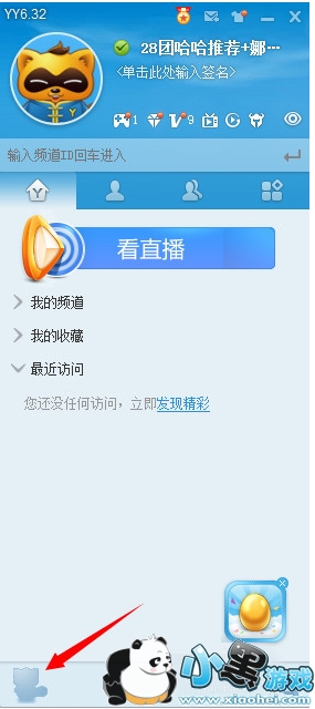 步骤二:登陆yy账号后,在yy界面的左下端有个yy图标,点击它。