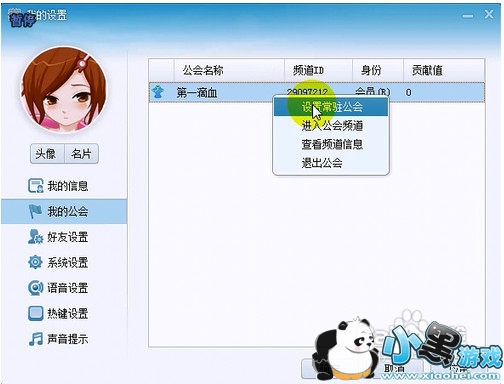 步骤五:常驻公会设置完成后,进入常驻公会,在频道列表中你的马甲上会有一个黄色的小圆点