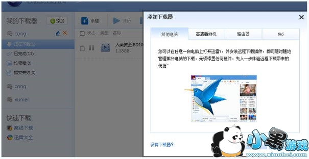 | ![]() 5、点击添加设备就可以进行绑定,但手机上面是不可以控制“迅雷7“上的远程下载插件的。这样就可以下载文件了。