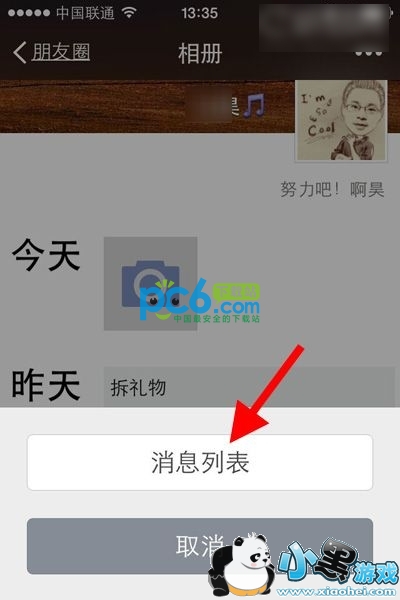 3、进入朋友圈相册“消息”功能,就可以看到历史收到的点赞信息和评论消息了。