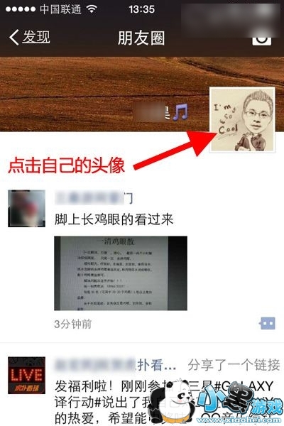 1、打开微信“朋友圈”,在界面上点击自己的头像;