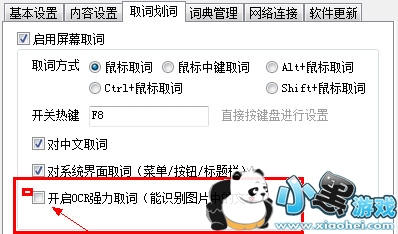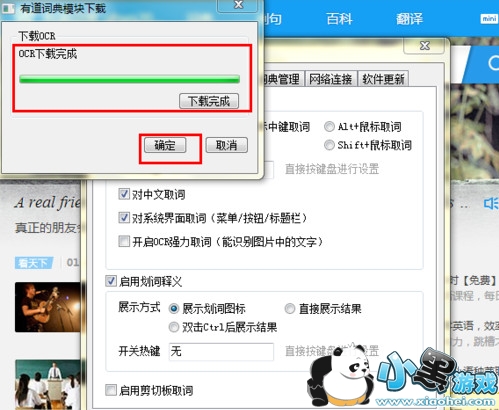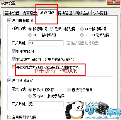 3、等待OCR下载完成,完成以后将多出的“开启OCR强力取词”勾选,这样你就可以进行图片的英文翻译了。