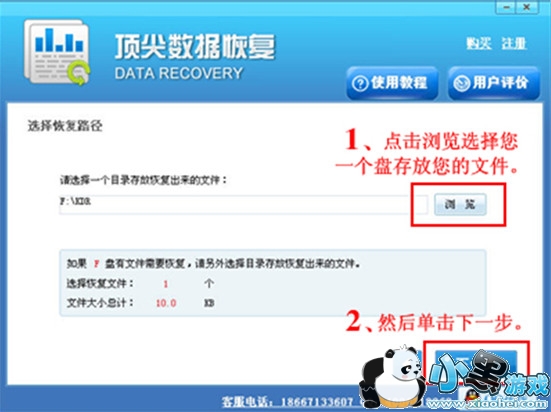 第四步:选择一个盘存放需要恢复出来的文件,然后单击下一步。