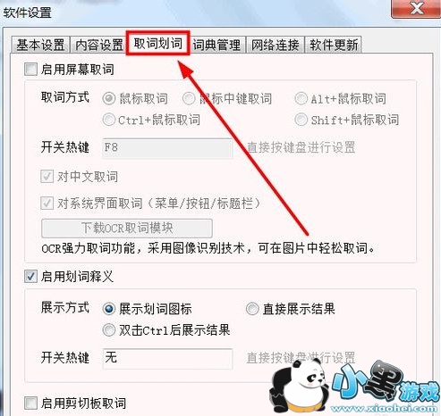 3、弹出软件设置对话框,选择“取词划词”按钮
