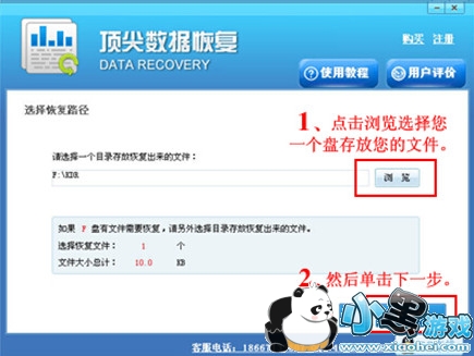 第五步,点击浏览选择一个盘存放要恢复的文件,然后单击下一步。(存放的位置要和恢复文件的位置不同,以免被覆盖)
