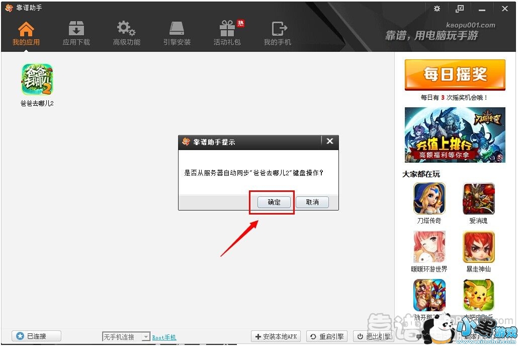 3、APK安装完成后,若出现以下提示,请点击“确定”,即可实现从服务器同步该应用的键盘操作功能(脚本):