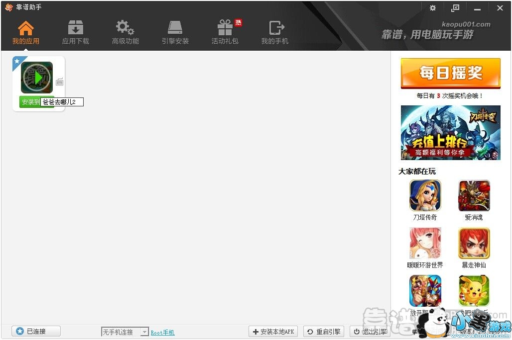 有些网友在用靠谱助手时不知道怎么安装本地apk,我们可以先在游戏网站下载游戏的apk文件,然后使用靠谱助手上的本地apk功能进行安装,这里把操作方法做了一个图文教程,不会的童鞋可以看看。