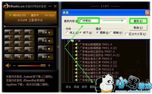 一、在版面底部点击“查找”然后输入“关键词”来查找其他的台电或歌曲名,因为列表实在是太多台电和类目了,一个个翻看也费时间。