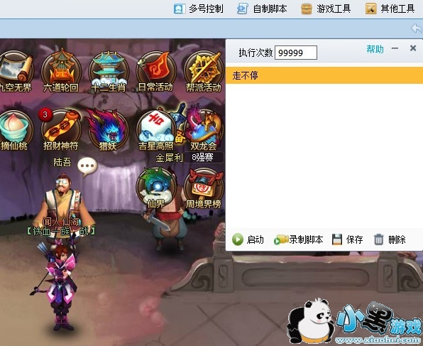 选中已录制好的脚本并设置执行次数点击启动按钮启动脚本。(脚本可后台可最小化运行)