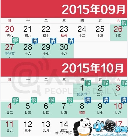 ⑤中秋十一:请假3天,12天,或请假6天,休16天……