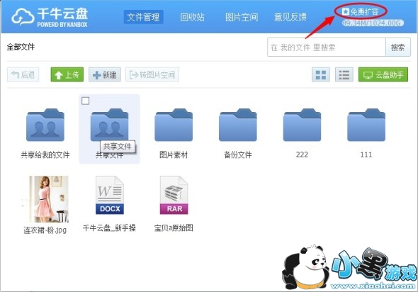 点击右上角的“免费扩容”,完成云盘扩容任务后可以获得另外500G的永久免费容量。