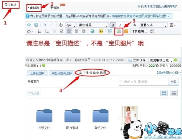 要求:在卖家中心发布宝贝,从云盘中选择图片上传并发布宝贝,奖励250G