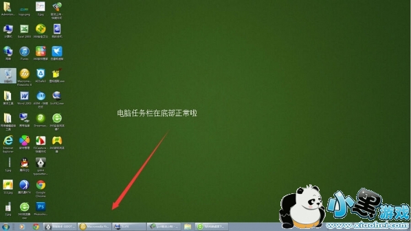 ②鼠标放在任务栏中间的地方,单击鼠标不丢,拉到下面,松开左键