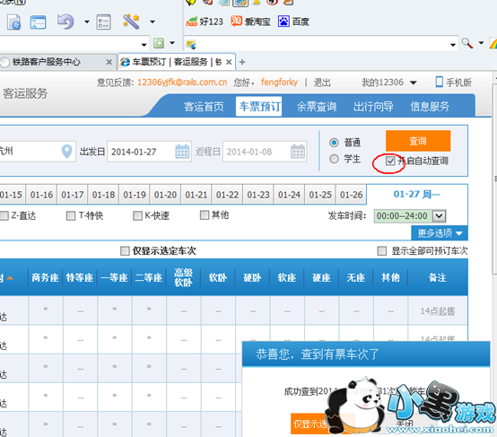 b) 提前开浏览器后勾选自动查询,否则登陆就自动掉出来了,可刷新网页看你的用户名是否还在右上方