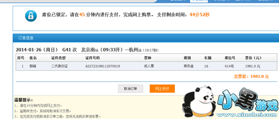 十四、不要等太长时间才付款,旺季不会等45分钟才掉票,5分钟内付款完毕绝对没有问题