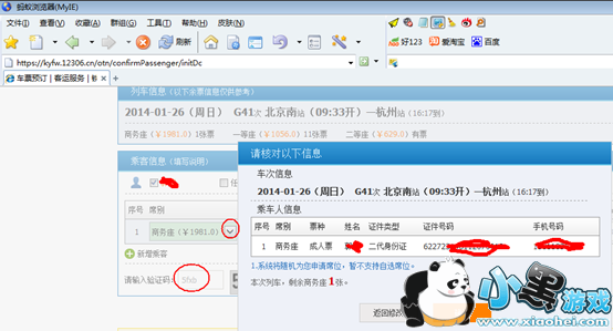 b) 输入4位验证码后不用回车,网站会自动跳出这个购票确认对话框,不要看,赶紧点确定