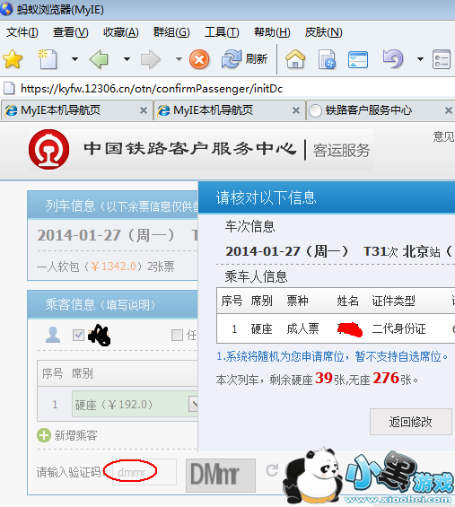 h) 系统报验证码错误时,直接点下验证码图标以获取新验证码。尽管你输入的是对的,但是12306网站忙,导致验证码超时过期了,所以说是错的。