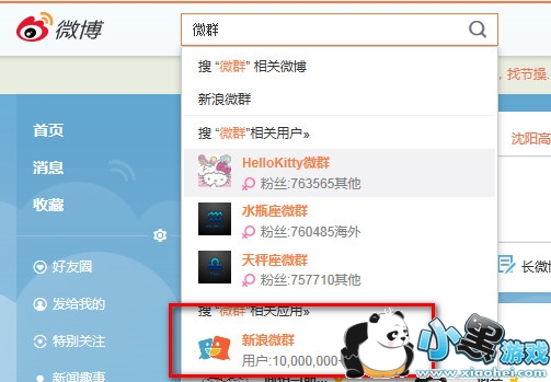 步骤二:进入微博首页之后,在搜索框中输入微群二字,在最下方便出现了微群应用。