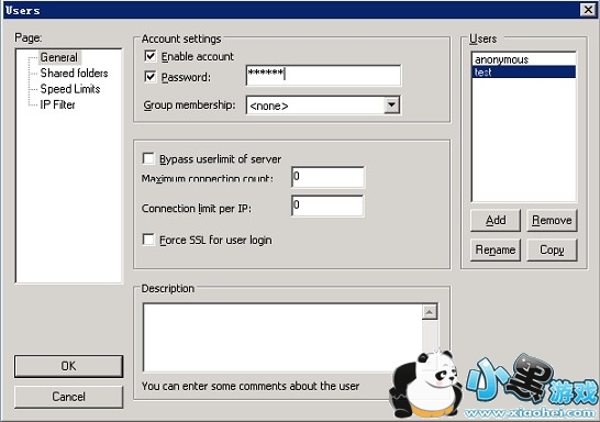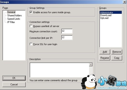组设置中的“Speed Limits”和“IP Filter”跟全局设置里面的速度限制和IP过滤器设置方法是一样的,请参照前面的内容。只不过这个是仅仅针对这个组的用户生效。而全局设置是对所有的用户都生效。设置完毕之后点击“OK”按钮回到主界面。